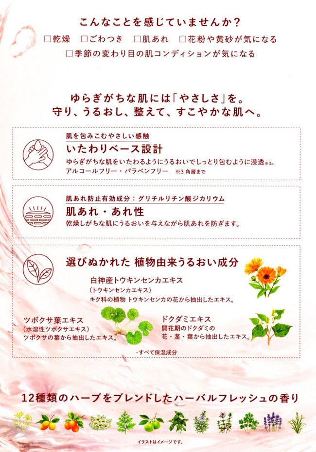11種類のハーブの香りをアシタバエキスなど自然の恵みから生まれた植物配合。
